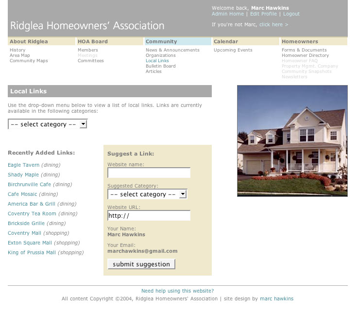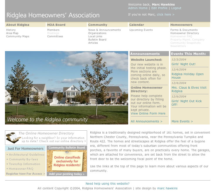 A smattering of personal projects from the last 20 years. Some local websites, a home owners' association website, sites for friends, and some previous versions of this site. Enjoy the shoebox of screen caps.
