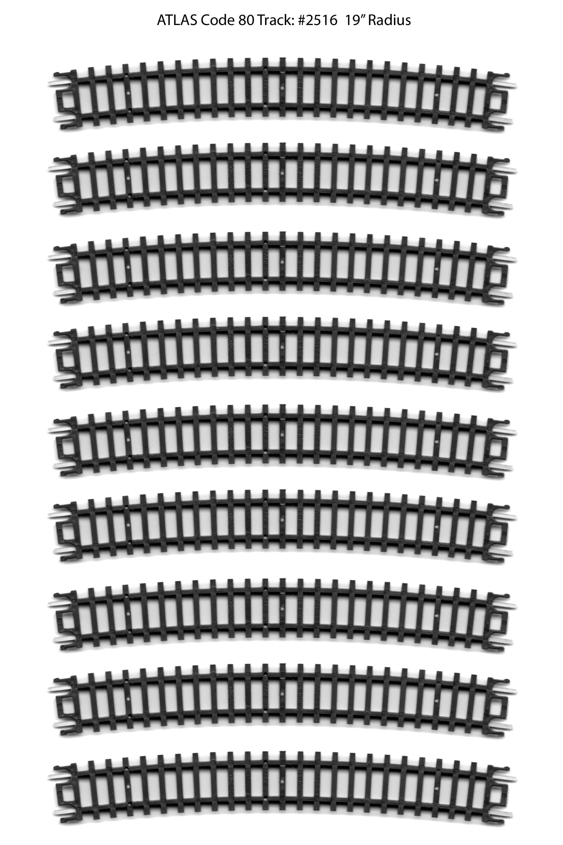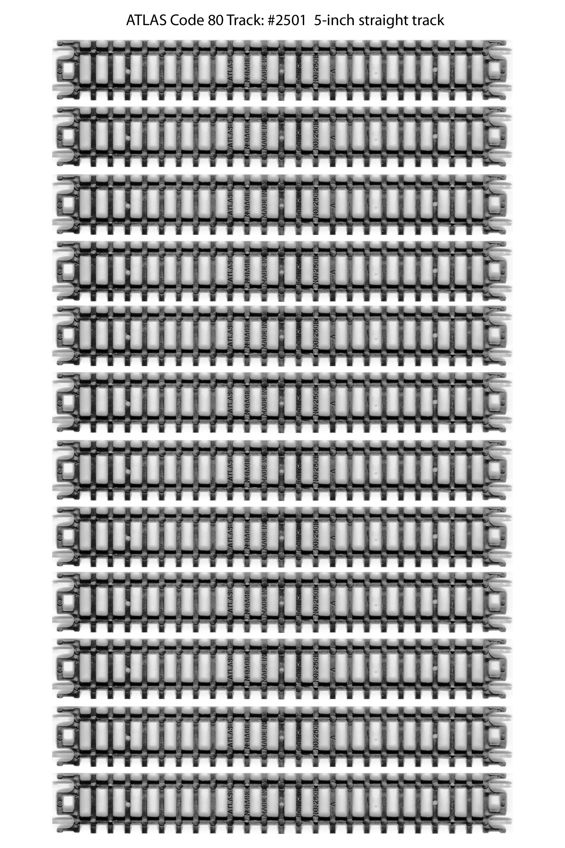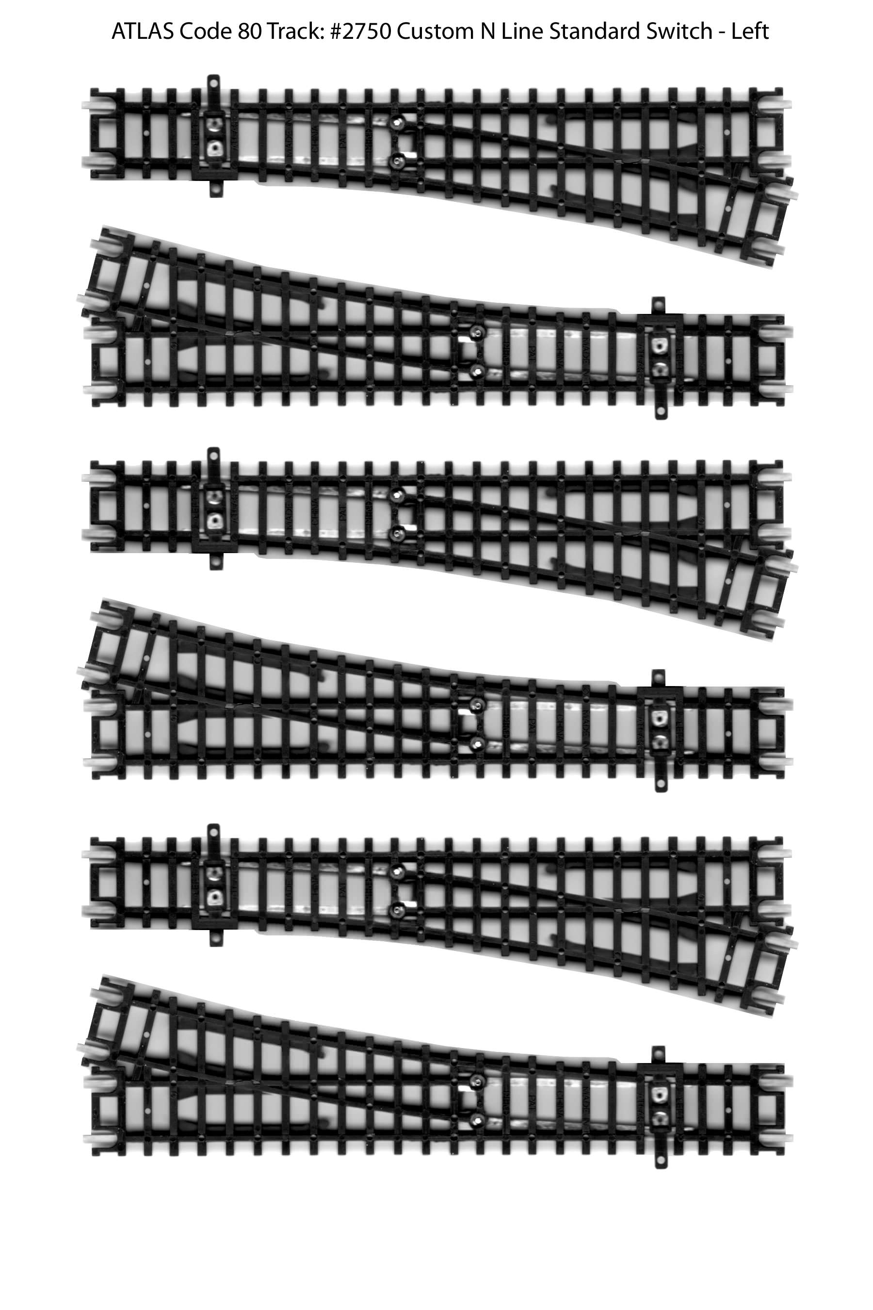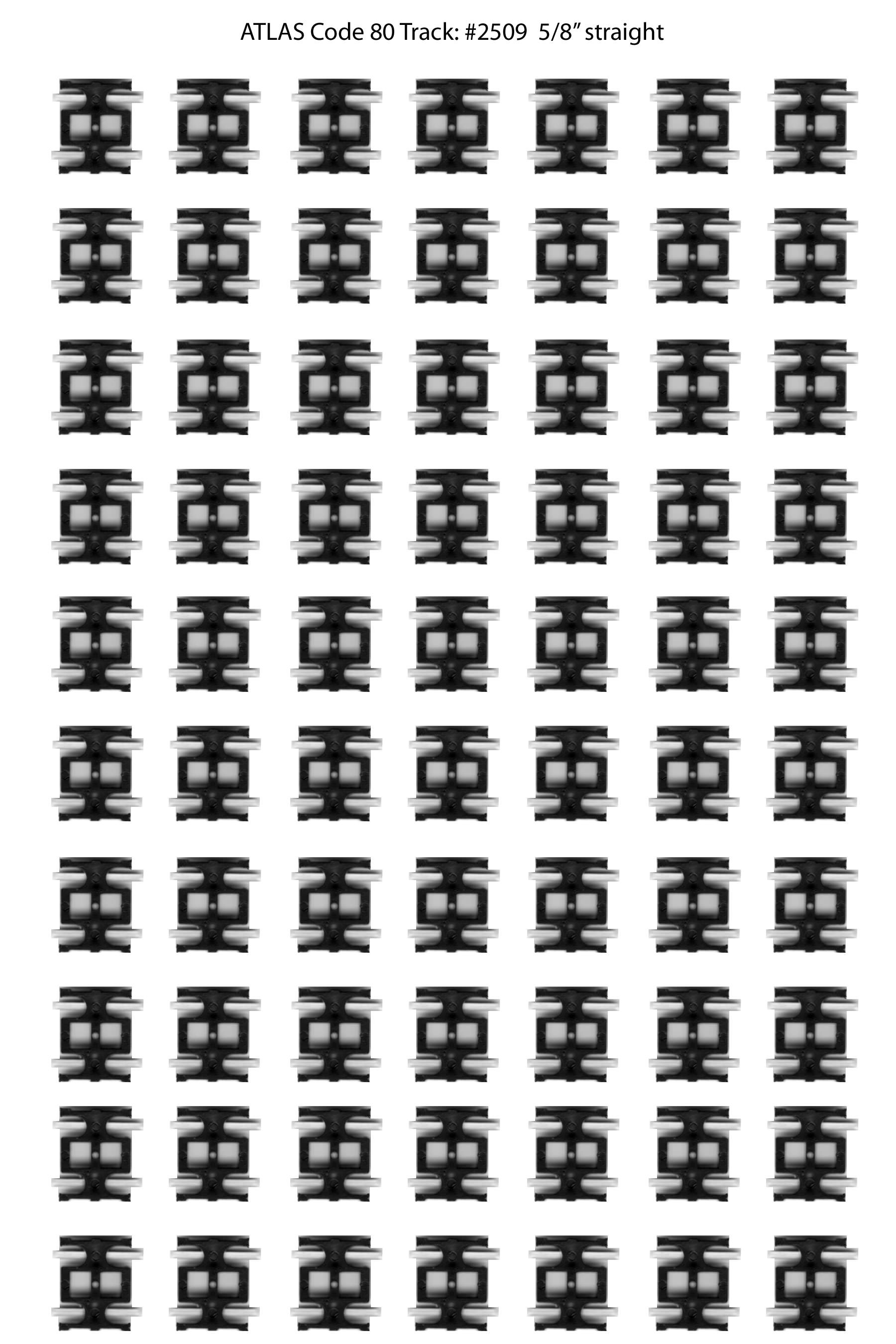 I haven't put them down on the benchwork yet, but in the meantime I thought I'd post them here for downloading by anyone else who might be looking for the same thing. I'm sure seasoned modelers have lots of spare track laying around, but for new-comers like me this might be helpful. For reference, this is Atlas N-Code 80 track. The image below are 300 dpi jpeg files. If you print them out at 100%, they should be the exact size of the real thing. I've posted the Atlas part number as part of the file name (note #2509 is a 'variety pack' that contains 3 different sizes of track). You can right-click to download/save the images.